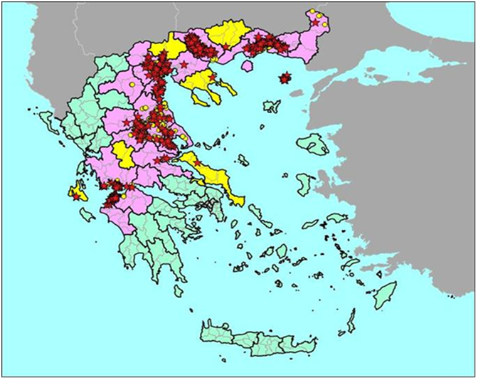 - Στις απαγορευμένες ζώνες (εικόνα 2) δεν επιτρέπονται μετακινήσεις παρά μόνο για άμεση σφαγή στο πλησιέστερο κατά το δυνατό σφαγείο, κατόπιν αρνητικού αποτελέσματος test pcr στο σίελο.