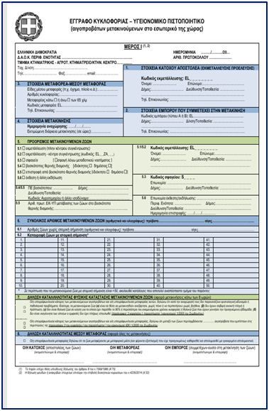 - Οι μετακινήσεις προς σφαγή πραγματοποιούνται μόνο εφόσον έχει δοθεί άδεια από την αρμόδια κτηνιατρική αρχή, η οποία εκδίδει υγειονομικό πιστοποιητικό-έγγραφο κυκλοφορίας το οποίο συνοδεύει το φορτίο (εικόνα 1).