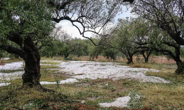 Ζημιές σε ελαιοπαραγωγούς από την έντονη χαλαζόπτωση στην Κορινθία.